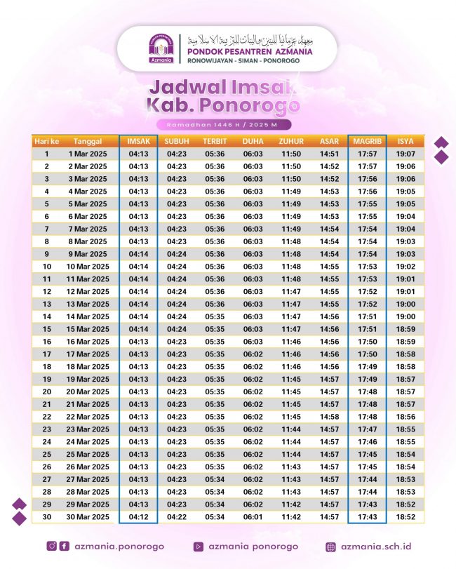 Jadwal Imsakiyah Ramadhan 1446 H / 2025 M untuk Ponorogo