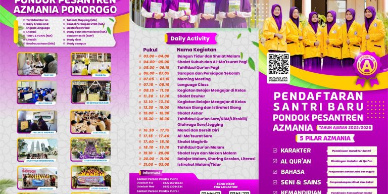 🌟 Pendaftaran Santri Baru Dibuka! 🌟✨ PONDOK PESANTREN AZMANIA ✨📚 Tahun Ajaran 2026–2027 🔹 Terakreditasi A🔹 Mengusung 5 Pilar…