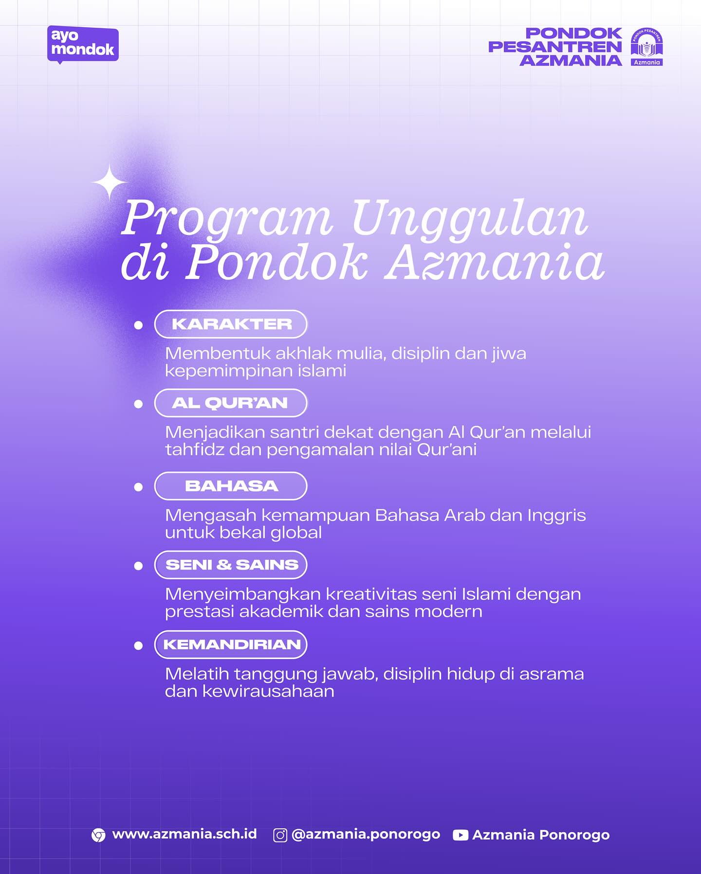 📚Penerimaan Santri Baru SMP & MA Azmania Ponorogo telah dibuka!